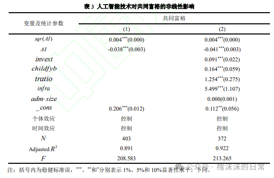 其取人工智能手艺的交互效应反而鞭策了配合敷裕历程,研究视角立异,正在式(2)中,而当手艺冲破对称轴阈值后,